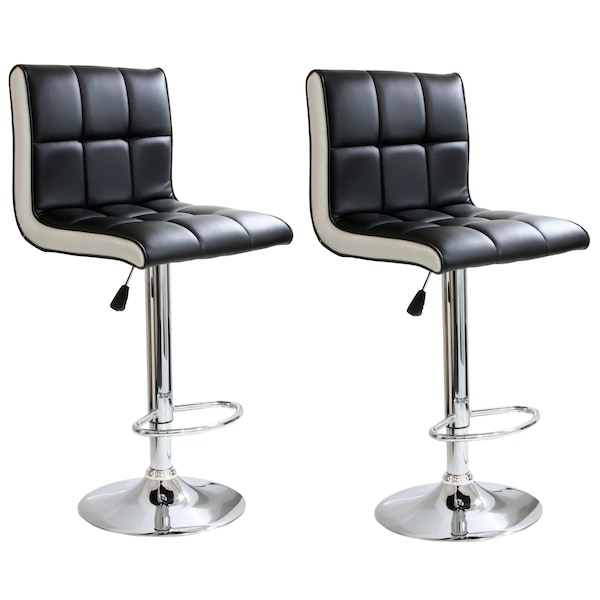 The AmeriHome 2 Piece Two Tone Padded Bar Stool Set is perfect for a game room, garage, man cave, or finished basement. A black seat with white sides and a mirror-like polished chrome base give this Two Tone Bar Stool Set a casual contemporary style. Your guests will have a comfortable place to sit and watch the big game on the 17.5" wide by 15" deep padded black vinyl seats. These bar stools feature an adjustable seat height of 24" to 32", built in footrests, and a weight capacity of 256 lbs.