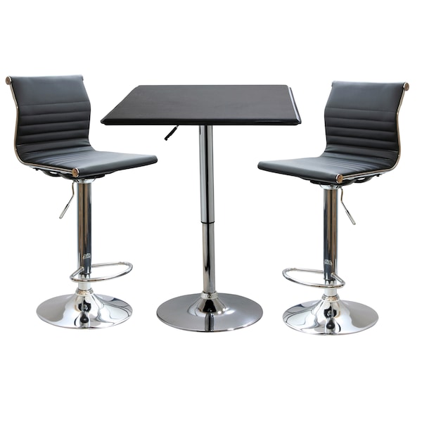 Set includes 1 adjustable bar height table and 2 adjustable counter height bar stools.
