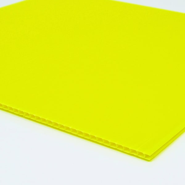Fluted polypropylene is a weather-resistant, recyclable plastic sheet ideal for temporary outdoor signage. It offers good ink adhesion, comes in various colors, and is lightweight and easy to work with using a standard utility knife.