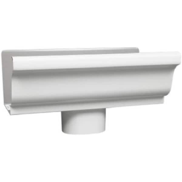 Features -Galvanized steel end piece with 3 in. drop for 5 in. gutter. -Size - 5 in. -Color - White. -Dimension - 5.5 x 10 x 5.75 in. -Item Weight - 0.55 lbs.
