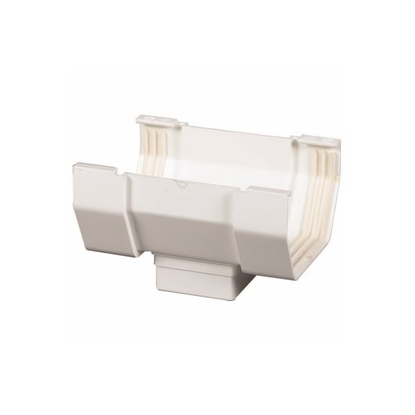 5, White Vinyl, Contemporary Style, Gutter Center Drop Outlet, Use To Channel Runoff From The Gutter To The Downspout Help Prevent Costly Foundation Damage, The Drop Outlet Features A Durable, Vinyl Construction With TriSeal Flexible PVC Gaskets, This Drop Outlet Is Designed To Withstand Extreme Temperatures From 40 To 150 Degrees Fahrenheit