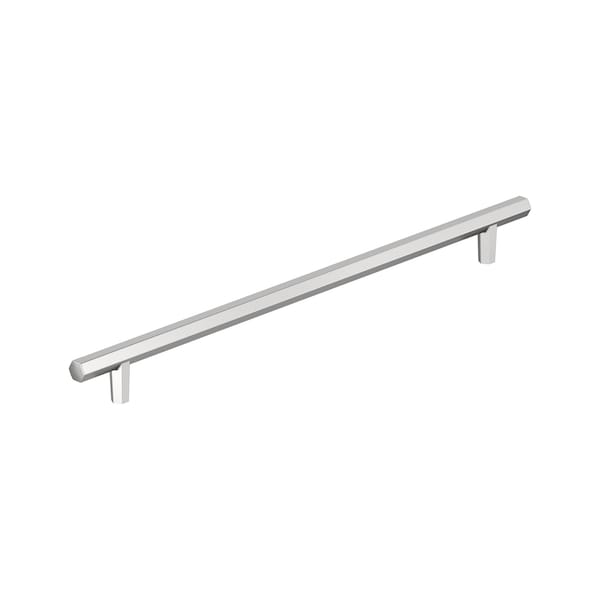 The Amerock BP3696126 Caliber 18 inch 457mm Center-to-Center Appliance Pull is finished in Polished Chrome. Featuring a geometric aspect that puts a twist on a typical bar pull, the Caliber collection creates a lasting impression with its contemporary, chic appeal. With its shimmering mirrorlike nature, the slightly cool blue undertones of chrome enhance the surface of any product. Founded in 1928, Amerocks award-winning home solutions including decorative and functional cabinet hardware, bath accessories, decorative hooks and wall plates have built the companys reputation for chic design accessories that inspire homeowners to express their personal style. Amerock offers a variety of styles and finishes at affordable prices that add the perfect finishing touch to any room.