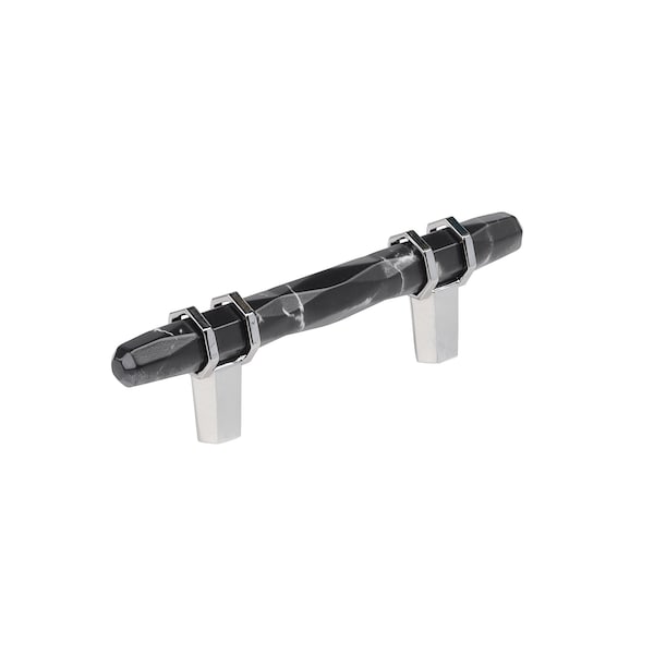Carrione 3 inch 76mm Center-to-Center Marble Black/Polished Chrome Cabinet Pull