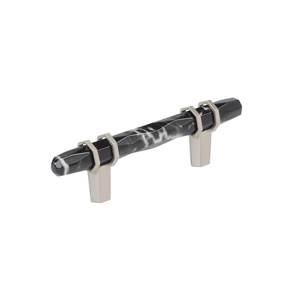 Carrione 3 inch 76mm Center-to-Center Marble Black/Satin Nickel Cabinet Pull