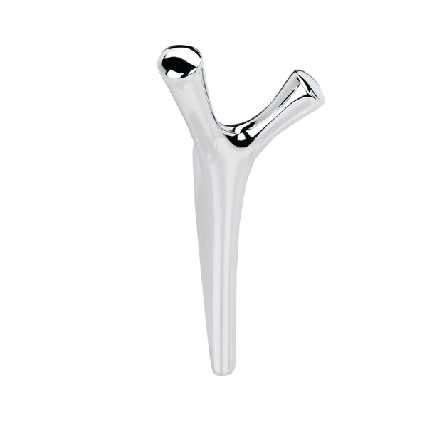The Amerock HBX3701726 Double Prong Decorative Hook is finished in Polished Chrome.