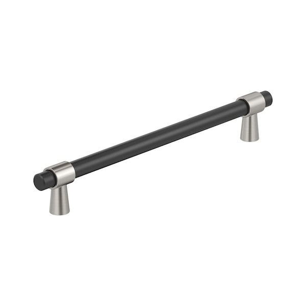 The Amerock BP36982FBG10 Mergence 12 inch 305mm Center-to-Center Appliance Pull is finished in Matte Black/Satin Nickel. A meeting of attractive and streamlined elements, the Mergence collection adds a touch of mid-century modern flair with its split-finish, assembled design. An alluring, high-contrast split finish, Matte Black and Satin Nickel marries the striking tone of Matte Black with the delicately brushed, subtle warm accents of Satin Nickel. Founded in 1928, Amerocks award-winning home solutions including decorative and functional cabinet hardware, bath accessories, decorative hooks and wall plates have built the companys reputation for chic design accessories that inspire homeowners to express their personal style. Amerock offers a variety of styles and finishes at affordable prices that add the perfect finishing touch to any room.