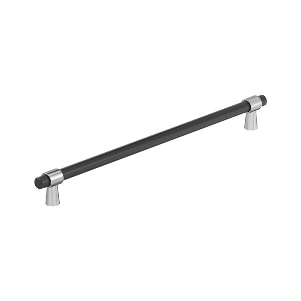 The Amerock BP36984FB26 Mergence 18 inch 457mm Center-to-Center Appliance Pull is finished in Matte Black/Polished Chrome. A meeting of attractive and streamlined elements, the Mergence collection adds a touch of mid-century modern flair with its split-finish, assembled design. An alluring, high-contrast split finish, Matte Black and Polished Chrome marries the striking tone of Matte Black with the mirror-like accents of Polished Chrome. Founded in 1928, Amerocks award-winning home solutions including decorative and functional cabinet hardware, bath accessories, decorative hooks and wall plates have built the companys reputation for chic design accessories that inspire homeowners to express their personal style. Amerock offers a variety of styles and finishes at affordable prices that add the perfect finishing touch to any room.