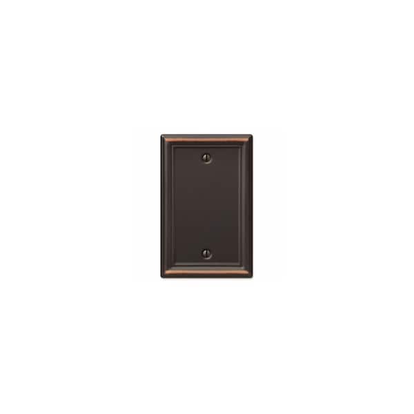 Single Blank wall plate. Chelsea, aged bronze finish. Made from stamped steel. This stylish wall plate adds simple elegance to your decor. Manufactured by the leader in decorative wall plates and hardware.