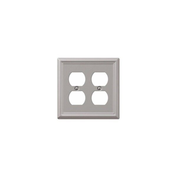 2 Duplex wall plate. Chelsea, brushed nickel finish. Made from stamped steel. This stylish wall plate adds simple elegance to your decor. Manufactured by the leader in decorative wall plates and hardware.