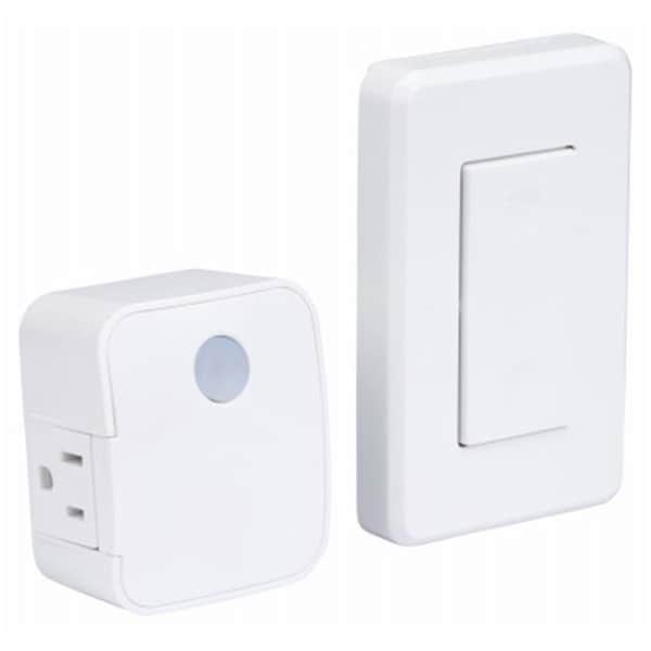 White, Wireless, Mountable Wall Switch, PlugIn Receiver, Mount Switch Anywhere To Enhance Convenience, Safety & Security,Radio Frequency Light Control, Turns Lights & Appliances On/Off FromAnywhere In Your House, No Wiring Needed, Work Up To 80' Away, Available In 3Channels To Isolate From Interference & To Operate Multiple Fixtures OrAppliances, Compact Fluorescent & LED Compatible.