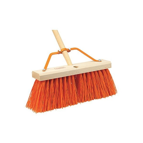 Harper, 16, Assembled Stiff Synthetic Street Broom, Extra Stiff, Crimped Bristles, 614 Trim Length, Assembled With 118 x 60 Tapered Lacquered Handle Steel Brace, Sweeps Heavy Debris Such As Mulch, Heavy Dirt Gravel With Flicking Action, For Outdoor Use Under Wet Or Dry Conditions Such As Streets, Roofing Job Sites, Landscaping Construction