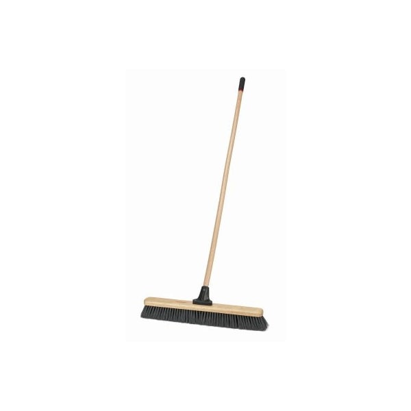 Harper, 24, Commercial Industrial, Outdoor, Rough Surface, Push Broom, With 60 x 118 Lacquered Handled, 3 Fine Outer Bristles With Stiff Inner Bristles, Shock Absorbing Connector Eliminates Bulky Braces That May Bend Or Break, While Taking The Impact That Helps To Reduce Back Wrist Strain, The Unbreakable Connector Will Not Allow The Handle To Loosen, The Innovative Material Is Stronger Than Steel Easier To Navigate With, Great For Asphalt, Concrete Rough Wooden Floors
