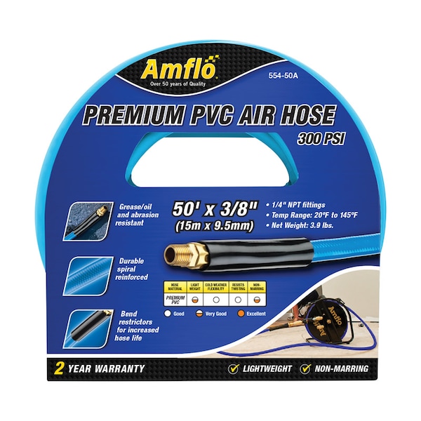 Amflo 50 ft. L X 3/8 in. D Polyvinyl Air Hose 300 psi Blue (Discontinued)