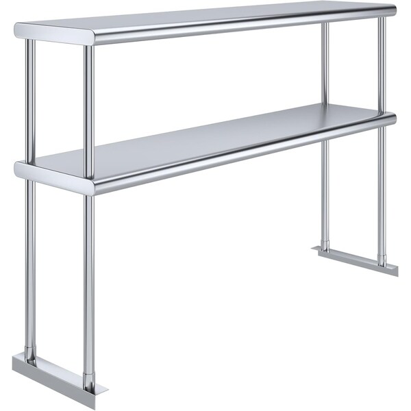Double tier overshelf is mounted on top of a work table which allows to significantly maximize the available space of your kitchen.Heavy duty construction of AmGood double tier overshelves allows for many years of use in a commercial environment.Lower shelf is fully adjustable. Double tier overshelf ships knocked down and can be easily installed in 10-minutes.