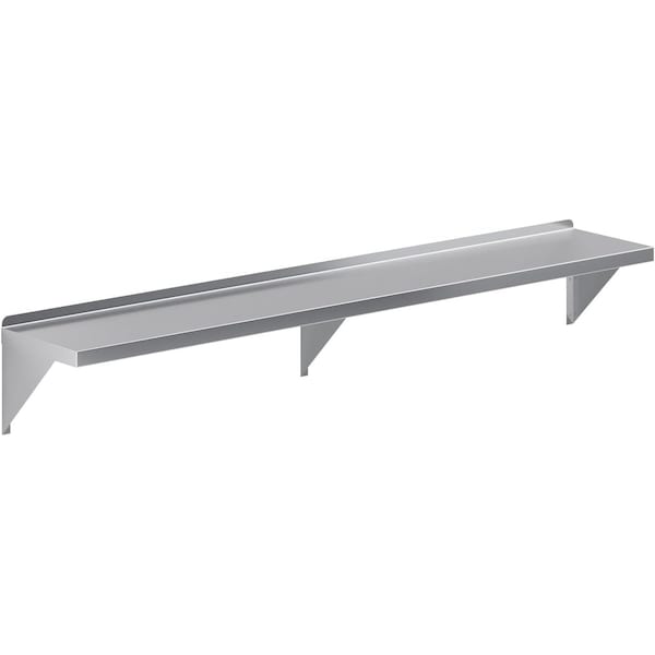 12 in. x 72 in. Stainless Steel Wall Shelf with 10 in. High Mounting Brackets and 1 in. backsplash. Squared edge. Enhance your organization and efficiency with the Amgood stainless steel wall mount shelf. Crafted with high-quality stainless steel, this shelf offers durability and sleek aesthetics for any space. Its sturdy construction ensures steadfast support for an array of items, spanning from spices and ingredients to small kitchen appliances and cleaning supplies. , Product Specifications: 18 Gauge 430 Stainless Steel Shelf , 285 Lbs weight capacity, 1 in. backsplash, 2 Stainless Steel Shelf Mounting Brackets, NSF Certified, Sturdy & Easy to Setup, Heavy Duty Common Applications: Shelf For Commercial Kitchen, Appliance Storage For Home Kitchen, Utility Shop, Garage Storage, Laundry Room Storage, Bathroom, Stove Top / Oven Shelf, Closet Setup, Janitors Room, Butcher Shop, Etc NSF certified to meet the strictest standards for public health protection. The industrial-quality manufacturing process meets the highest regulatory requirements for construction, safety, and durability. Ships knocked down.