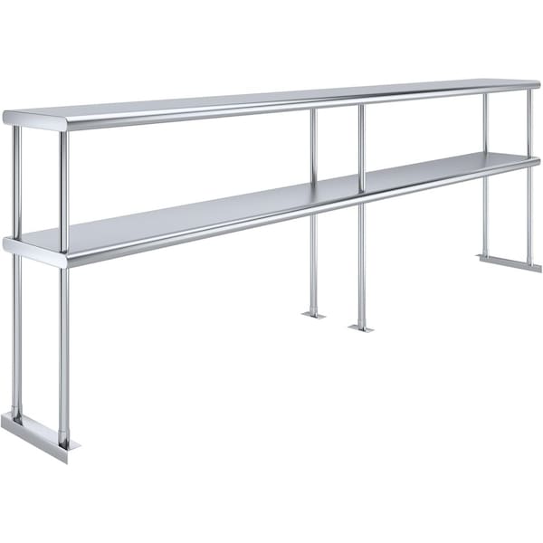 Double tier overshelf is mounted on top of a work table which allows to significantly maximize the available space of your kitchen.Heavy duty construction of AmGood double tier overshelves allows for many years of use in a commercial environment.Lower shelf is fully adjustable. Double tier overshelf ships knocked down and can be easily installed in 10-minutes.