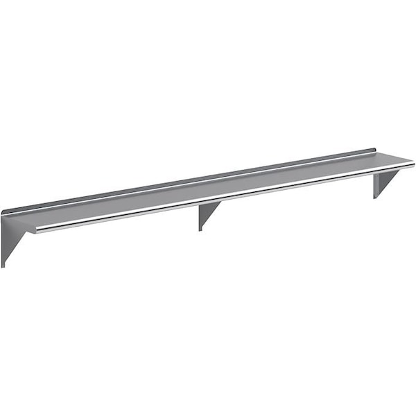 - •12 in. x 96 in. Stainless Steel Wall Shelf with 10 in. High Mounting Brackets. This heavy-duty multifunctional stainless wall shelf is made with 18 gauge stainless steel and can hold up to 360 Lbs of weight. The design features a 1 in. backsplash and bullnose edge. It's made with durable welded corners and support brackets.