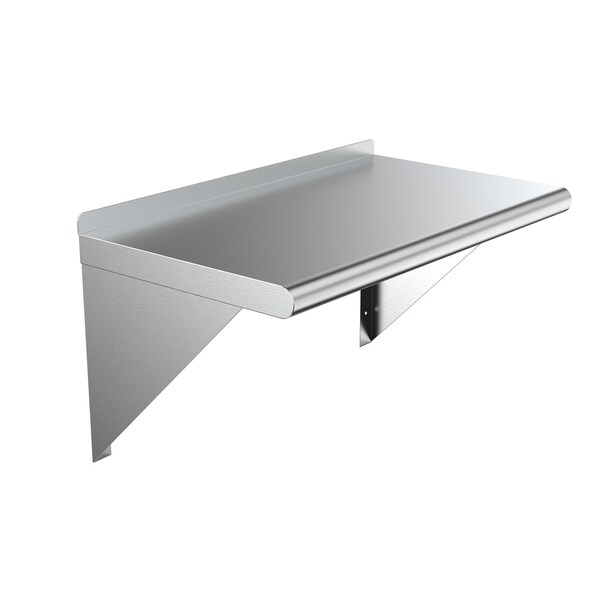 This heavyduty multifunctional stainless wall shelf is made with 18 gauge stainless steel The design features a 1 backsplash and bullnose edge It's made with durable welded corners and support bracketsIts professional, modern and sleek design makes this metal floating shelf perfect for use in any residential or commercial kitchen, food truck, garage, closet, laundry room, utility and equipment room, lab, appliance shelf for toaster and microwave, etcNSF certified to meet the strictest standards for public health protection The industrialquality manufacturing process meets the highest regulatory requirements for construction, safety, and durabilityThis corrosionresistant wall mount shelf can handle anything you throw at it and will last for years to come Easy to clean and sterilize, metal shelves are superior to wood or glass Food and liquid wont get stuck or ruin the integrity of the surface Easily wipe away excess with no fuss, mess, or contaminationThe shelf ships knocked down Brackets, hardware, and installation manual are included Installation takes less than 15 minutes