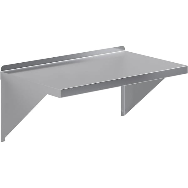 18 in. x 30 in. Stainless Steel Wall Shelf with 13 in. High Mounting Brackets and 1 in. backsplash. Squared edge. Enhance your organization and efficiency with the Amgood stainless steel wall mount shelf. Crafted with high-quality stainless steel, this shelf offers durability and sleek aesthetics for any space. Its sturdy construction ensures steadfast support for an array of items, spanning from spices and ingredients to small kitchen appliances and cleaning supplies. , Product Specifications: 18 Gauge 430 Stainless Steel Shelf , 315 Lbs weight capacity, 1 in. backsplash, 2 Stainless Steel Shelf Mounting Brackets, NSF Certified, Sturdy & Easy to Setup, Heavy Duty Common Applications: Shelf For Commercial Kitchen, Appliance Storage For Home Kitchen, Utility Shop, Garage Storage, Laundry Room Storage, Bathroom, Stove Top / Oven Shelf, Closet Setup, Janitors Room, Butcher Shop, Etc NSF certified to meet the strictest standards for public health protection. The industrial-quality manufacturing process meets the highest regulatory requirements for construction, safety, and durability. Ships knocked down.