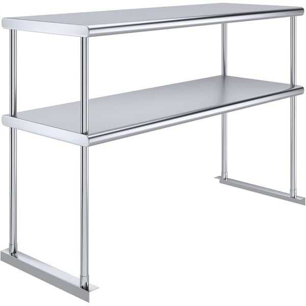 Double tier overshelf is mounted on top of a work table which allows to significantly maximize the available space of your kitchen.Heavy duty construction of AmGood double tier overshelves allows for many years of use in a commercial environment.Lower shelf is fully adjustable. Double tier overshelf ships knocked down and can be easily installed in 10-minutes.