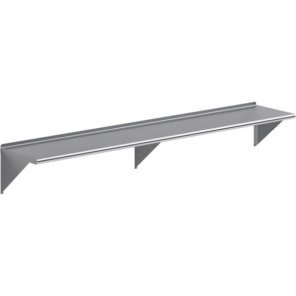 18 in. x 96 in. Stainless Steel Wall Shelf with 16 in. High Mounting Brackets and 1 in. backsplash. Bullnosed edge.Enhance your organization and efficiency with the Amgood stainless steel wall mount shelf. Crafted with high-quality stainless steel, this shelf offers durability and sleek aesthetics for any space. Its sturdy construction ensures steadfast support for an array of items, spanning from spices and ingredients to small kitchen appliances and cleaning supplies.Product Specifications: 18 Gauge 430 Stainless Steel Shelf 600 Lbs weight capacity 1 in. backsplash 2 Stainless Steel Shelf Mounting Brackets NSF Certified Sturdy Easy to Setup Heavy DutyCommon Applications: Shelf For Commercial Kitchen Appliance Storage For Home Kitchen Utility Shop Garage Storage Laundry Room Storage Bathroom Stove Top / Oven Shelf Closet Setup Janitors Room Butcher Shop EtcNSF certified to meet the strictest standards for public health protection. The industrial-quality manufacturing process meets the highest regulatory requirements for construction, safety, and durability. Ships knocked down. All products are packaged shipped according to the industry's best practices to ensure damage-free flawless delivery and the highest level of customer satisfaction.