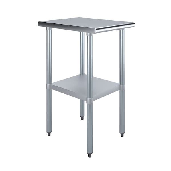A Stainless Steel Utility Work Table is a great addition to any home or business It is perfect for a variety of tasks, including a workbench, prep table, or generalpurpose table The included bottom shelf provides additional storage space Some assembly is requiredNSF certification allows the table to be used in any food service environmentThe table is made with corrosion resistant 430 stainless steel top and galvanized legs and bottom shelf It's built to withstand heavy use and everyday wear and tear Whether you need a sturdy workspace for your next DIY project or simply want an extra prep area in the kitchen, this utility table has you coveredCommon ApplicationsFood Prep Table For Commercial KitchenKitchen IslandCounter ExtensionUtility Bench for ShopProfessional Work StationGarage Work BenchLaundry Clothes Folding TableBrewing SetupExam Table For VeterinariansButcher ShopProduct SpecificationsStainless steel work table surface has curved edges for safety and comfort It incorporates a heavy duty adjustable galvanized bottom shelf and leveling feet18 Gauge 430 Stainless Steel TopGalvanized Adjustable bottom shelfAdjustable feet to compensate for uneven floorAdjustable under shelf great for storageHeight 35NSF CertifiedSturdy easy to setupHeavy Duty