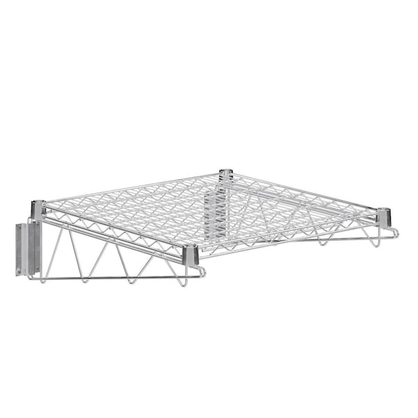 Maximize storage efficiency with this 24 in. x 24 in. Chrome Wire Wall Mount Shelf, designed for commercial and residential use. Its chrome-plated wire construction provides excellent durability and corrosion resistance, while the open-wire design promotes airflow, keeping items dry and reducing dust buildup.With a 300 lb. evenly distributed weight capacity, this shelf is perfect for holding kitchen supplies, office equipment, tools, and more. The included 8 in. high chrome-plated wall brackets ensure a secure and stable installation, making it a reliable storage solution for any organized space.Applications:Restaurants & Commercial Kitchens - Ideal for storing dry ingredients, cookware, and utensils.Home Pantries & Kitchens - Organize canned goods, spices, and small appliances.Garages & Utility Rooms - Keep tools, cleaning supplies, and household essentials easily accessible.Retail & Warehouse Storage - Efficiently store or display lightweight merchandise.Offices & Workspaces - Keep office supplies, binders, and electronics neatly organized.