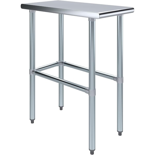 An open base stainless steel utility work table is a great addition to any home or business. It is perfect for a variety of tasks, including a workbench, prep table, or general-purpose table. Open base allows to store equipment and supplies with plenty of clearance. Some assembly is required. NSF certification allows the table to be used in any food service environment. The table is made with corrosion resistant 430 stainless steel top and galvanized legs and cross bars. It's built to withstand heavy use and everyday wear and tear. Whether you need a sturdy workspace for your next DIY project or simply want an extra prep area in the kitchen, this utility table has you covered. Common Applications: Food Prep Table For Commercial Kitchen, Kitchen Island, Counter Extension, Utility Bench for Shop, Professional Work Station, Garage Work Bench, Laundry Clothes Folding Table, Brewing Setup, Exam Table For Veterinarians, Butcher Shop Product Specifications Stainless steel work table surface has curved edges for safety and comfort.