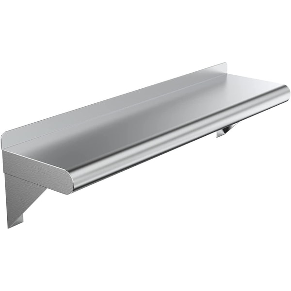 This heavy-duty multifunctional stainless wall shelf is made with 18 gauge stainless steel. The design features a 1" backsplash and bullnose edge. It's made with durable welded corners and support brackets.