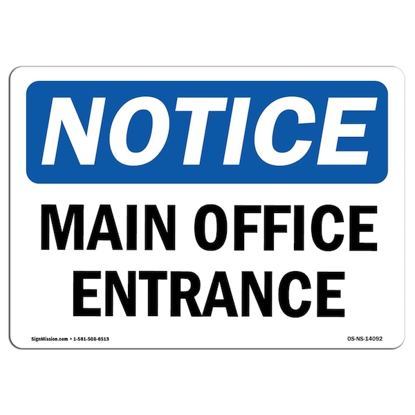 Notice Main Office Entrance OSHA Aluminum Sign