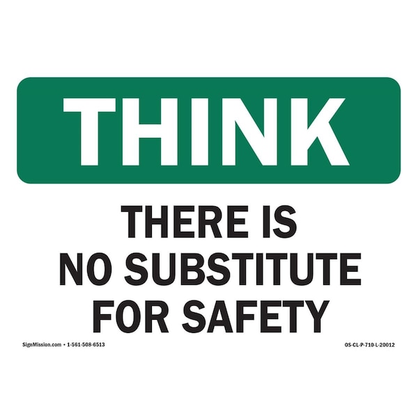 OSHA Think Safety Sign - There is No Substitute for Safety