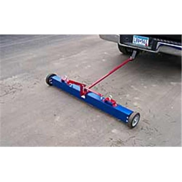 Unit features all new Lever action release system for easy unloading of magnetic material. The Trailblazer is constructed with a combination of heavy gauge steel and attractive aluminum tubing. It is a unique magnetic sweeper that can be used almost anywhere. Use it over concrete, asphalt grass or gravel. Attaches to almost any vehicle in under a minute...or push it around job site. Both models will grab an enormous amount of nails, wire, tin and other tire damaging steel.