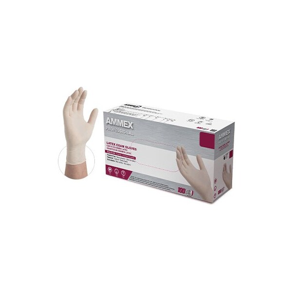 Brand Name: AMMEX Color: Ivory Material: Latex Number in Package: 100 Powder/Powder Free: Powder Free Product Type: Disposable Gloves Size: X-Large Sub Brand: Professional Cuff Type: Beaded Finish: Polymer Coated