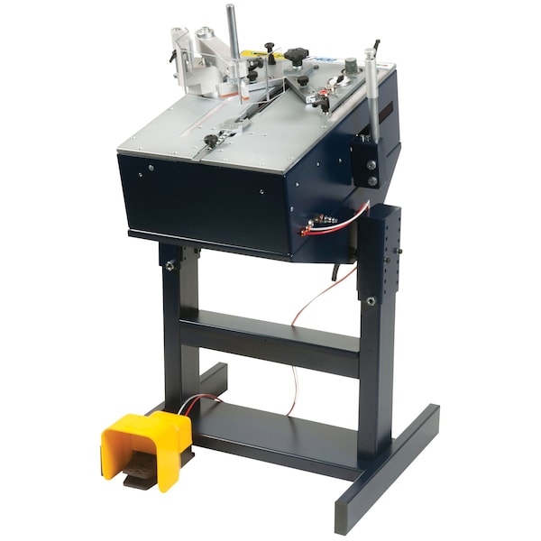 The U-400 has been designed for ease of operation and is particularly well suited for joining large frames up to 5.5in 140mm in width. Handles V-Nail sizes of 7mm, 10mmm 12mm and 15mm fasteners.Supplied with a tilting floor stand, the machine can be operated from the front or back and has a single stage pneumatic foot pedal that activates the Horizontal Clamp, securing moulding during the joining process. Limited Warranty: 24 months for mechanical components - 12 months for pneumatic partsAfter the framer sets the two position stops for measuring the max distance between strokes, a dual function hand lever is then used to position and actuate both the Vertical Mould Holding Clamp and the V-Nail driver inserting V-Nails anywhere along the pre-set stroke distance.