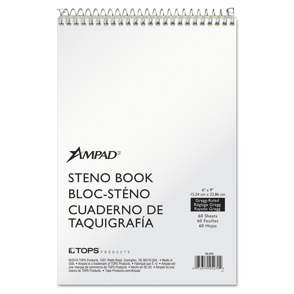Ampad® Steno Books are ideal for everyday use at home, school or office. The classic flip-top format long preferred by stenographers and reporters gives quick access to notes and lists. A no-snag coil resists catching on papers or clothing. Perforated sheets detach easily.