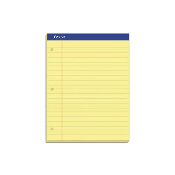 Ampad, DOUBLE SHEET PADS, MEDIUM/COLLEGE RULE, 8.5 X 11.75, CANARY, 100 SHEETS