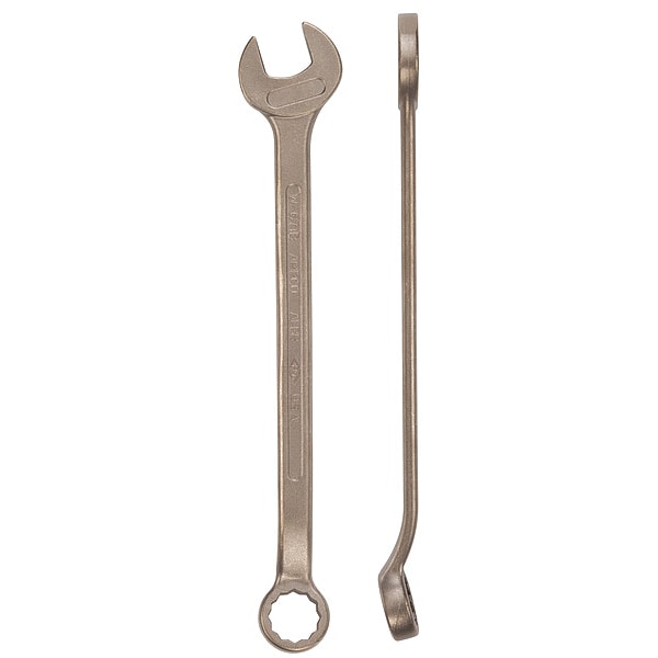 Combination Wrench, Aluminum Bronze Nickel, Natural, Head Size 2 1/2 in, Overall Length 22 3/4 in, Head Offset Angle 15 Degrees , Opening Angle (Deg.) 15 Degrees , Offset, SAE, Rounded