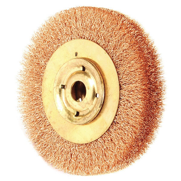Wire Wheel Brush, Bristle Type Crimped Wire, Bristle Material Bronze, Brush Dia. 6 in, Face Width 1 in, Bristle Diameter 0.014 in, Compatible Tool Type Angle Grinder, Connector Type Unthreaded Hole, Connector Size 3/4 in, Operating Speed - Maximum 6,000 RPM