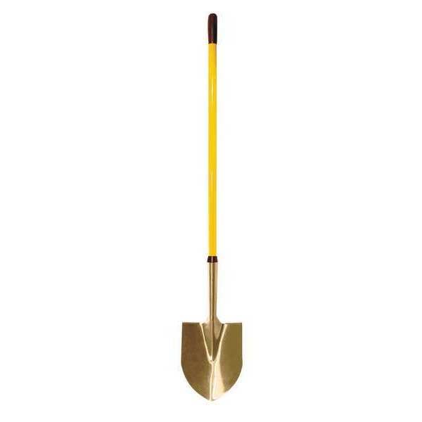 Round Point Non-Sparking Shovel, Product Type Non-Sparking Shovel, Blade Type Round Point, Blade Material Aluminum-Bronze Alloy, Blade Length 11 1/4 in, Blade Size Not Applicable, Blade Width 9 in, Blade Color Gold, Handle Type Straight, Handle Material Fiberglass, Handle Length 45 1/4 in, Handle Color Yellow, Blade Step Standard Step, Corrosion Resistant Yes, Non-Sparking Yes, Overall Length 56 1/2 in
