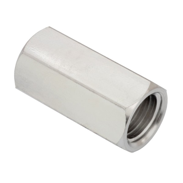 Coupling Nut, 1/2"-13, Aluminum, Plain, 1-1/4 in Lg, 5/8 in Hex Wd