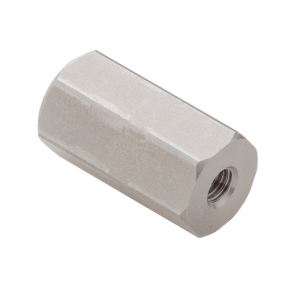 Coupling Nut Reducer, M4 and M5, 18-8 Stainless Steel, Not Graded, Plain, 25 mm Lg, 13 mm Hex Wd