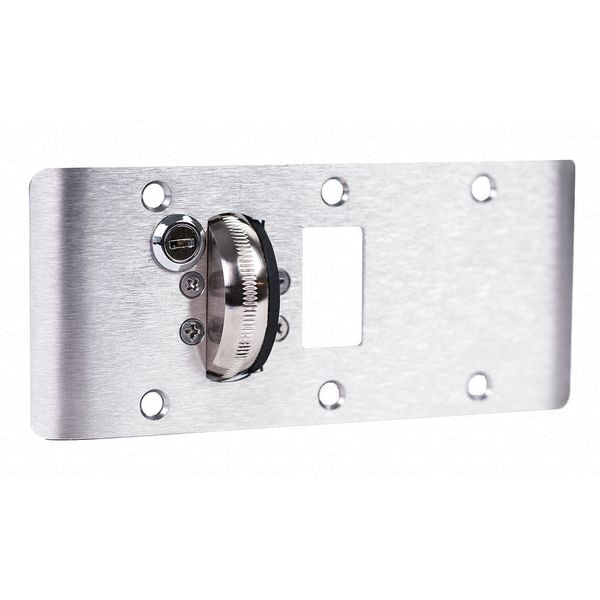 Door Strike Plate, Strike Type Curved Lip, Length 8 1/4 in, Width 2 in, Color Gray, Satin Chrome Finish, Material Steel, Hardware Not Included, Standards ANSI/BHMA A1882, ADA Compliant Yes