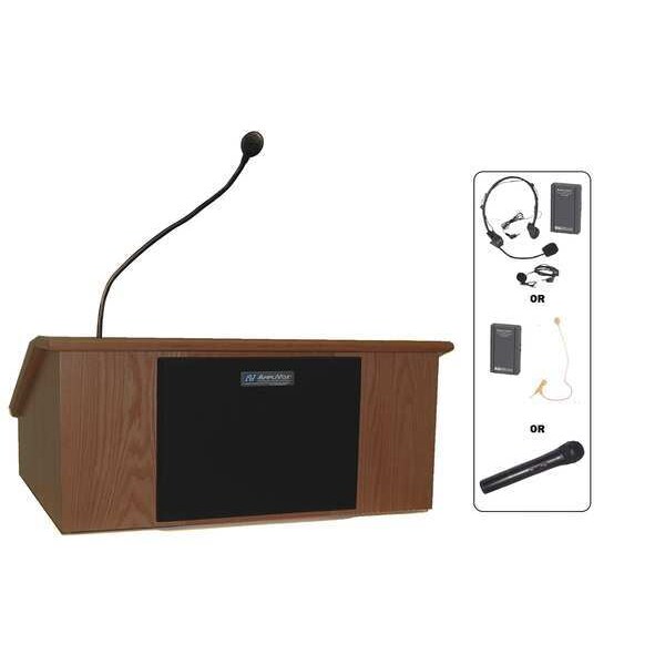 Lectern, Color Walnut, Material Scratch Resistant Laminate, Includes Amp, Microphone, Speaker