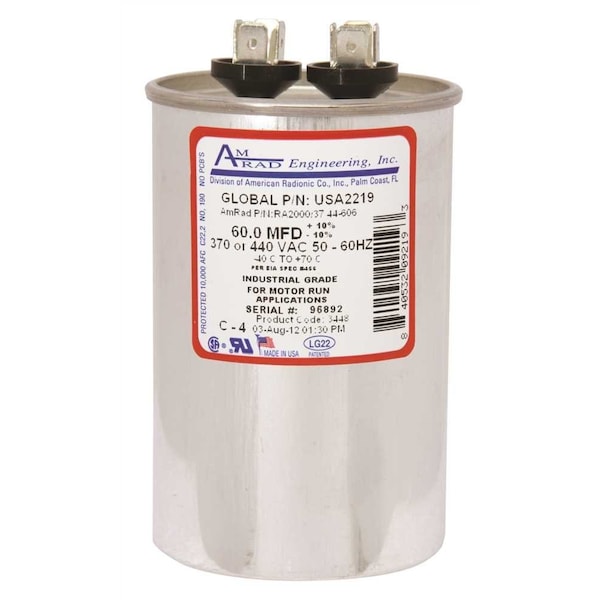 AMRAD USA MADE RUN CAPACITOR60.0 MF 370 440 RA2000/37 44-606 +/-10%