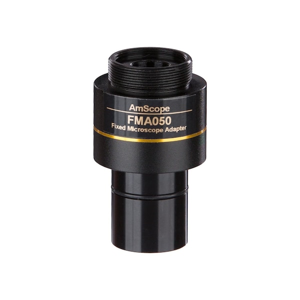 This reduction lens is designed to couple C-mount cameras with a microscope's ocular-tube or photo-tube. The male C-mount thread attaches to the camera, and the 23mm tube fits any standard ocular tube with a 23mm, 30mm, or 30.5mm diameter. The 0.5X magnification is ideal for cameras with a 1/2" format sensor, optimizing the field-of-view and sensor-coverage.