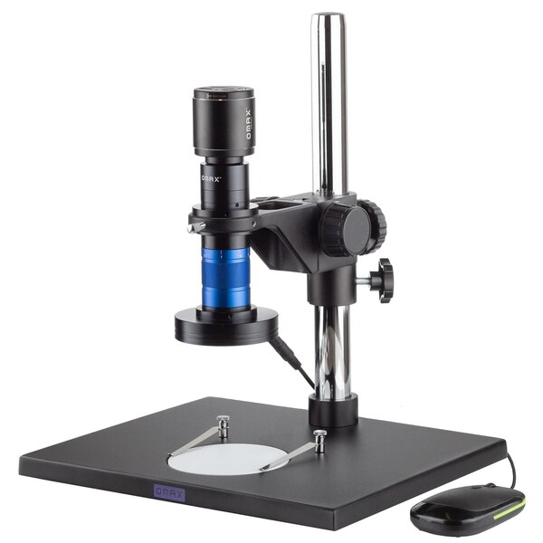 0.7X-4.5X Zoom Video Inspection Microscope with LED Ring Light, HDMI Output. This OMAX M5 Series video inspection system includes our 0.7X-4.5X zoom lens, a 1080p camera with live HDMI output, and a 60-LED ring light. Modular Zoom Lens M5745TD zoom lens systems provide a 0.7X to 4.5X magnification range when using the pre-mounted 1X auxiliary objective lens. Additional lenses from 0.5X to 2X are available to increase or decrease magnification. The zoom ring has a detent to click into place at key magnifications which can be especially useful when recording measurements or following redundant procedures on a production or QC line. Real-Time Video Output The included camera provides real-time 1080p video output which can be connected to a monitor or television using HDMI. The compact, lightweight camera takes up barely any space, but delivers high quality video with built-in recording capabilities for capturing videos and still images. A USB mouse is included to navigate the on-screen controls which eliminates handling vibration. Illumination An LED ring light is included to provide cool, even illumination. With the illuminator attached to the lens, the light will always be where you need it. 60 individual LEDs blanket the subject with light, daylight-balanced at 6500K for ideal imaging. Brightness can be controlled using the wired controller. Table Stand This package includes a table stand to provide fundamental support and focusing ability. The lens mounts to a basic focusing block designed specifically for the lens smaller diameter. An extra-tall pillar provides ample latitude and rotation while the focusing block offers symmetrical, tension-adjustable coarse focus knobs with 43mm travel. A large base provides plenty of stability along with a sturdy, metal working surface. Specifications Sensor Specifications Model IMX307 color Sensor Type CMOS Sensor Optical Format 1/2.8" Active Pixels 2.1M 1920 x 1080 Pixel Size 2.9m x 2.9m Active Sensor Area 5.57mm x 3.13mm Shutter electronic rolling shutter Sensitivity 1300mV @ 1/30s f/5.6 Spectral Response 380-650nm with IR-cut filter Other Camera Specifications Video Preview Resolution HDMI 1920 x 1080 Video Preview Framerate HDMI 60fps Video Capture Resolution 1920 x 1080 Video Capture Framerate 50-60fps based on SD card performance Internal Video Capture Format MP4 Photo Capture Resolution 1920 x 1080 Internal Photo Capture Format JPG Recording Media SecureDigital SDI3.0 Connectivity HDMI v1.4