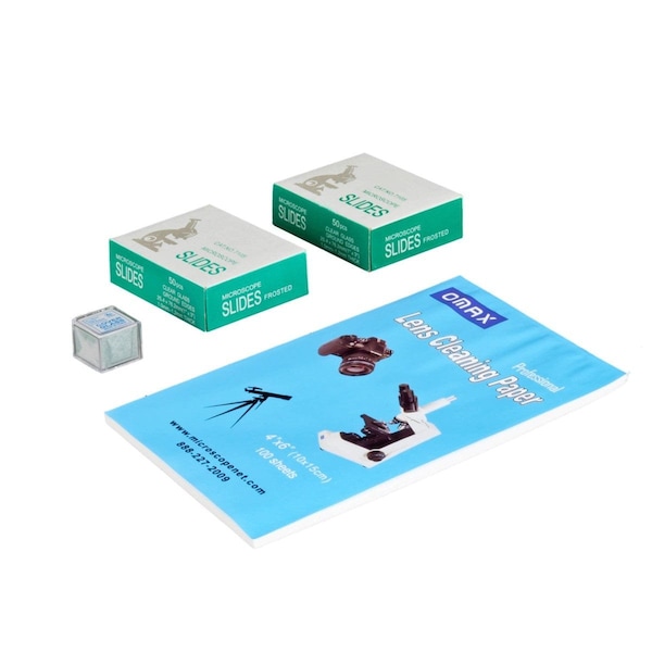 100-Piece Blank Glass Slides with Cover Slips plus 100-sheet Lens Cleaning Paper. This is a package of 100-piece blank glass slide, 100-piece square cover slips and 100-sheet 4" x 6" lens cleaning paper booklet. The dimensions of the slide are 3 " x 1" 76 x 26 mm with ground edges. The lens cleaning paper can be used to clean lenses and other glass objects without scratching the surface. The lens cleaning paper is specially used for cleaning microscopes, cameras, telescopes and laboratory apparatus. Specifications: Model: A96SC100-LP100 Slide material: optical glass Slide thickness: 1 mm - 1.2 mm Slide size: 3" x 1" 76 mm x 26 mm Cover slip material: optical glass Cover slip thickness: 0.13 mm - 0.17 mm Lens paper material: cotton Lens paper size: 4" x 6" 100mm x 150mm Water-absorptivity and soft thin lens tissue cleaning paper prevents lenses from being scratched Shipping package: 2 lb 1 kg Packing List: One pack of 100-piece blank glass slides One pack of 100-piece square cover slips One booklet of 100-sheet lens cleaning paper