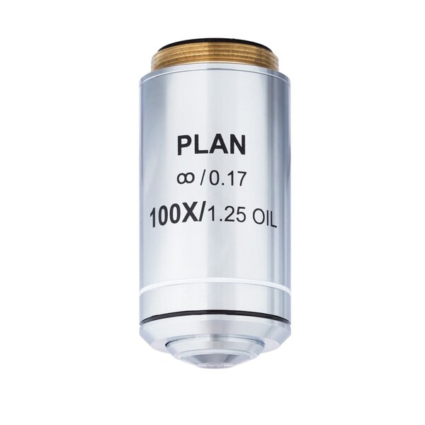 This is a brand new 100X (spring, oil) Infinity Plan Achromatic microscope objective lens. It is an International DIN/JIS lens. It fits common size (DIN/JIS standard) compound / biological microscopes. We also have 4X, 10X and 40X Plan objective lenses available. Give your microscope a boost with greater power & clarity at a fraction of cost.