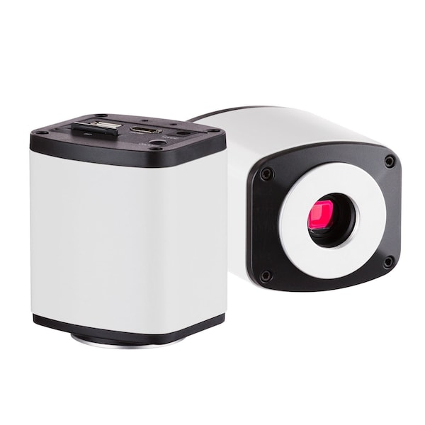 Our brand new 1920x1080, 15fps camera kit allows for live viewing and recording of your microscope image with ease. Record to an SD card, video devices via HDMI, or computer via USB 2.0. Now, viewing your microscope's image digitally has never been easier; simply connect the camera to any monitor via HDMI, and attach a USB mouse, and you're up and running with crystal clear images. On-screen adjustments can be easily made for exposure, saturation, brightness, contrast, tint, and noise reduction to provide you with the best image possible for any application. Compatible with stereo microscopes and compound microscopes, whether your needs are biological, industrial, gemological, or any other type of microscopy.