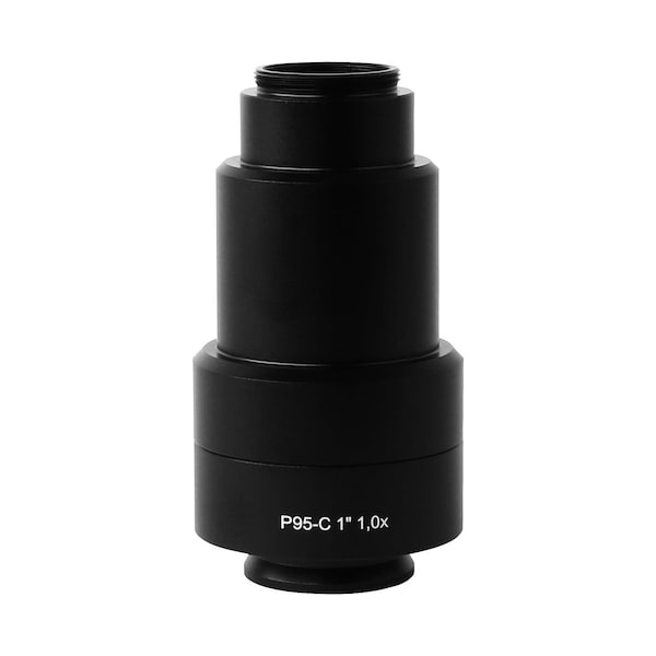 This is a 1X C-mount lens for Zeiss microscopes. The lens adapts C-mount cameras with sensors in the 2/3" to 1" range, to Zeiss' Primo Star and Primo Vert microscopes.